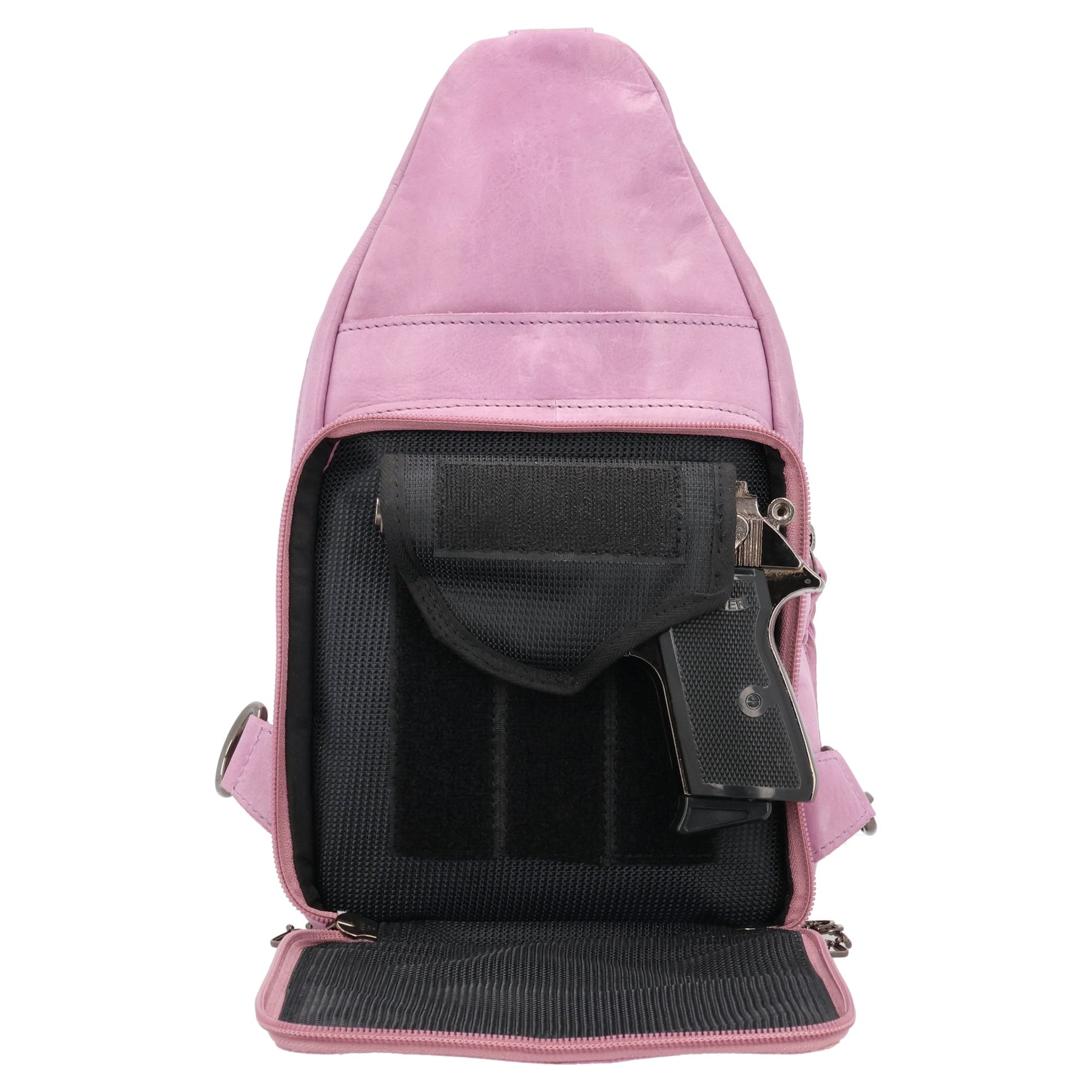 Concealed Carry Haven Sling Leather Backpack by Lady Conceal