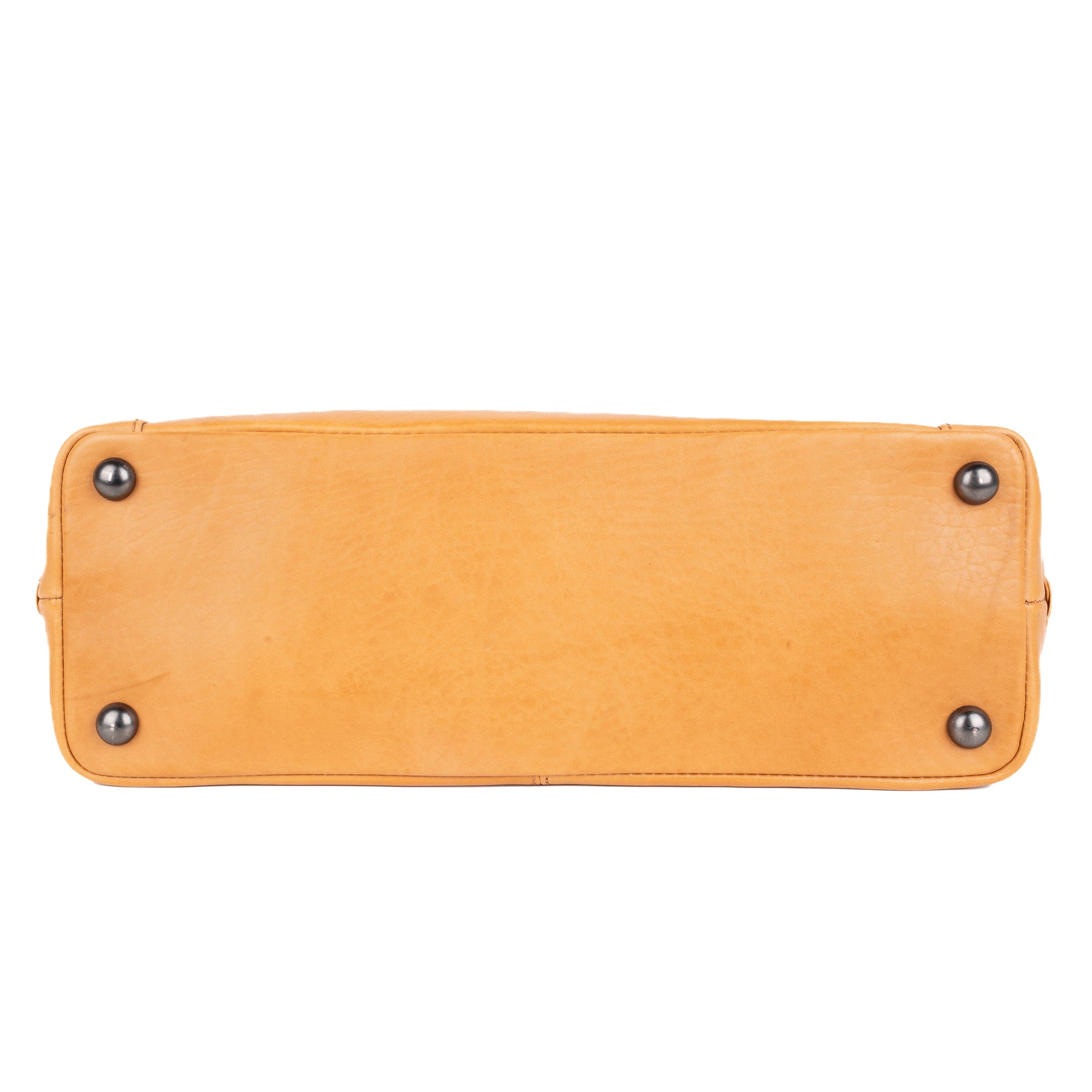 • Interior - divided into two parts by a full-length zippered pocket. Two slip pockets in front, zippered pocket, large open pocket and a leather strap for keys in back compartment