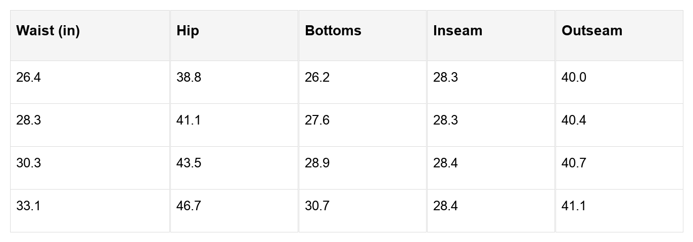 Tactica Leggings Sizing Chart on LovaMe Boutique