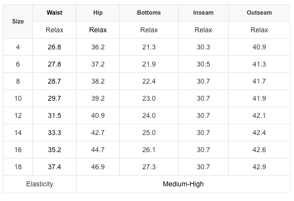 Tactica Leggings Sizing Chart on LovaMe Boutique
