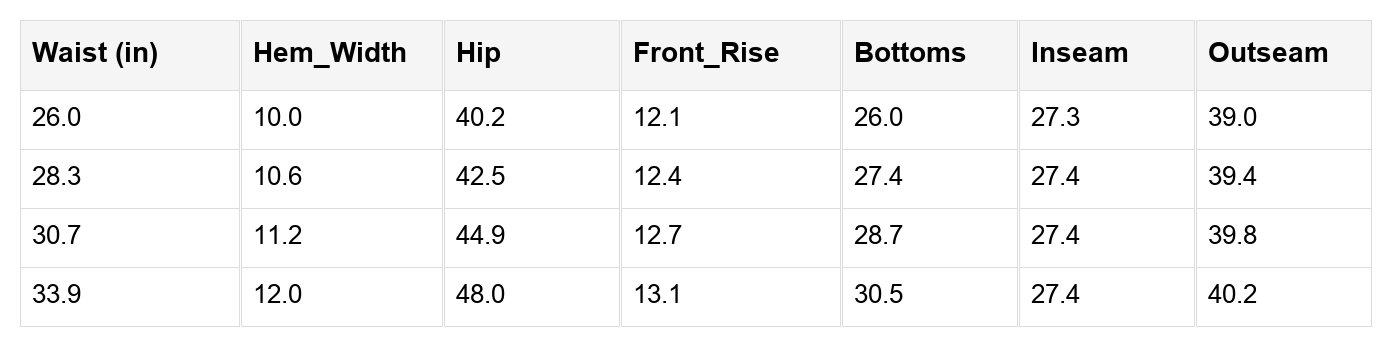 Tactica Leggings Sizing Chart on LovaMe Boutique