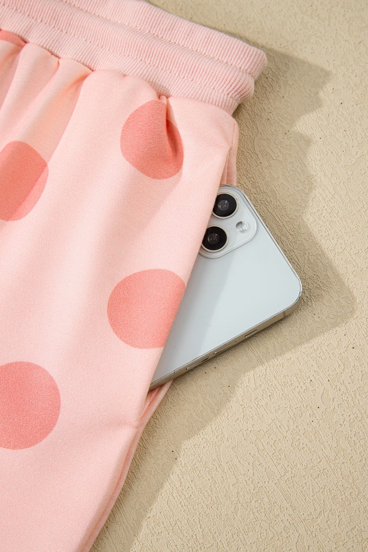 Aadhya Shoulder Pullover Drawstring Shorts is made for real life—easy to wear, easy to love. Cute polka dot set offering a relaxed, stylish look for everyday comfort. Drop shoulder pullover top adds a trendy, effortless vibe to your outfit. Soft drawstring shorts give a customizable comfort for lounging or casual wear. A versatile polka dot lounge set that pairs easily with sneakers or slides.
