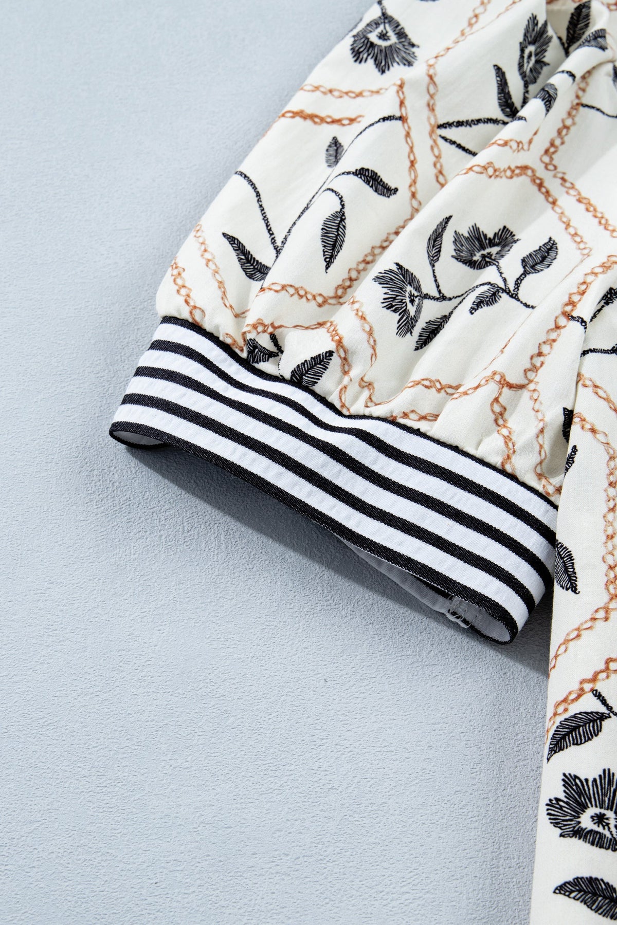 Hayden Patchwork Short Sleeve Blouse is made for real life—easy to wear, easy to love. This summer bllouse features an all-over floral and geometric print blend silhouette. Ruffled neckline and puff sleeves with striped detail. Relaxed, comfortable silhouette for most body shapes. This printed blouse is effortless to elevate your summer outfit look.