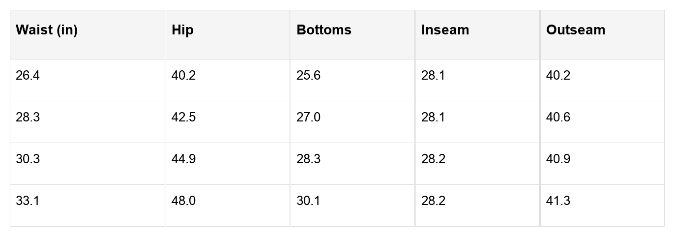 Tactica Leggings Sizing Chart on LovaMe Boutique