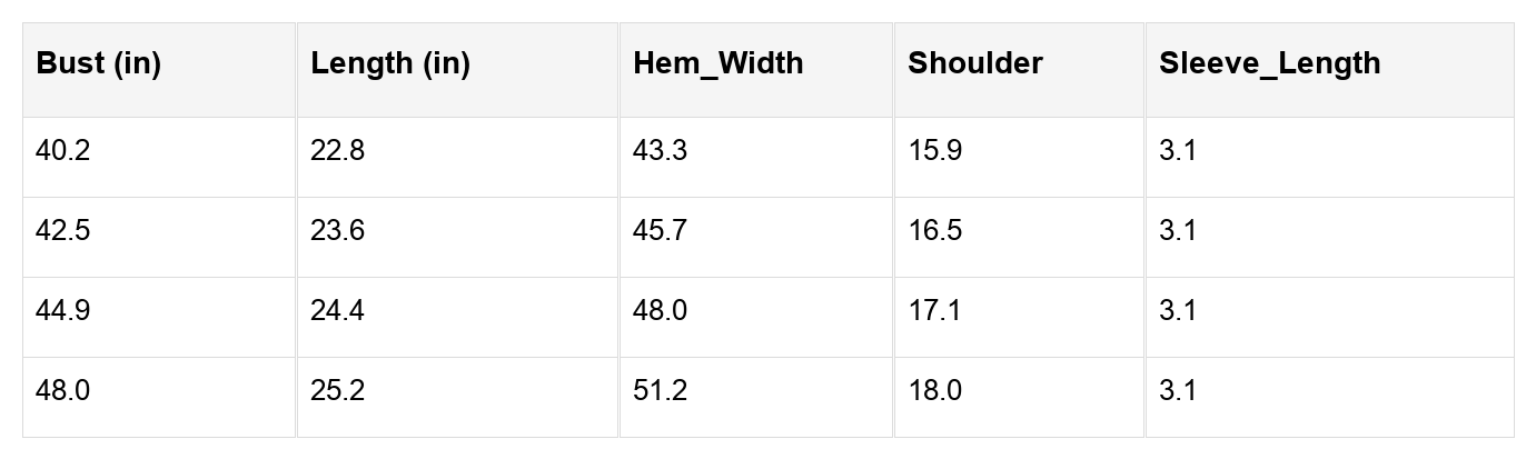 Tactica Leggings Sizing Charts
