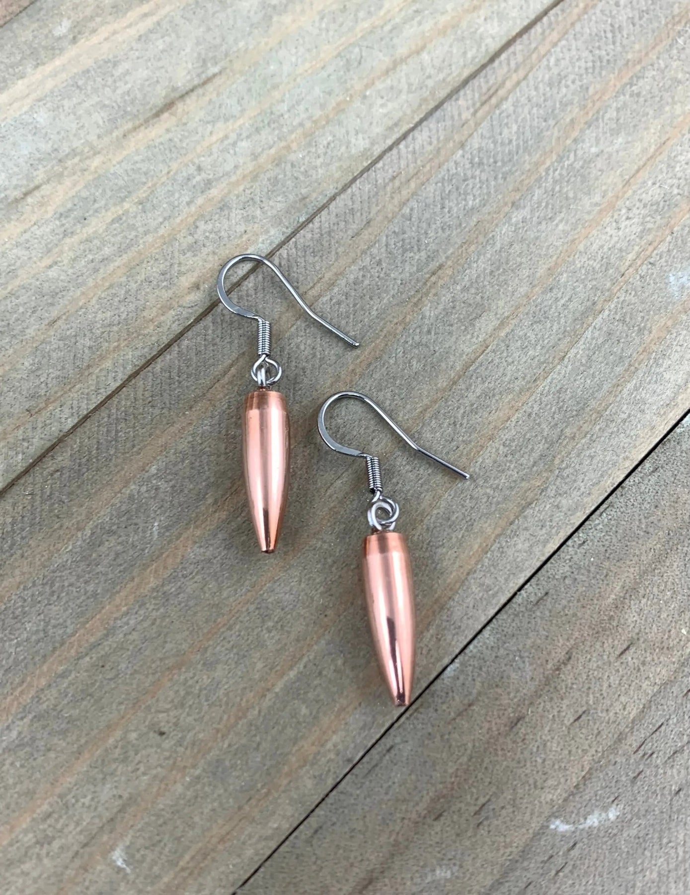204 Dangle Bullet Earrings, Copper, Surgical Steel Earwires, Lightweight, Trendy, Recycled, Dainty, 22